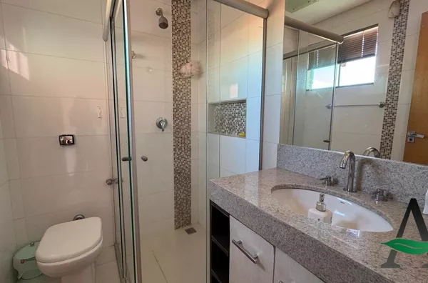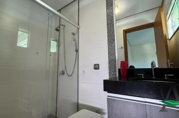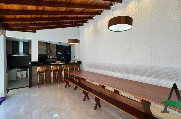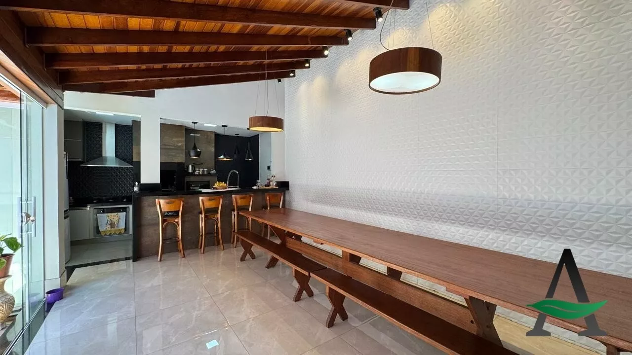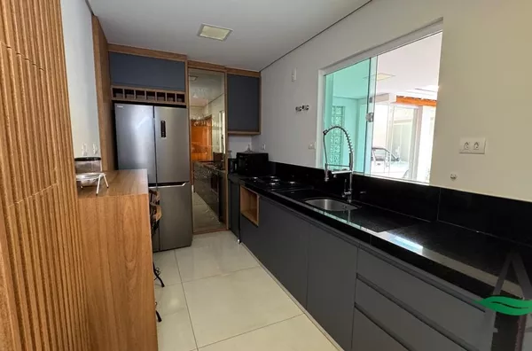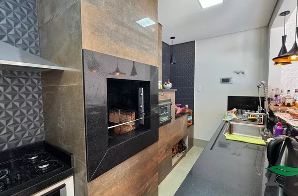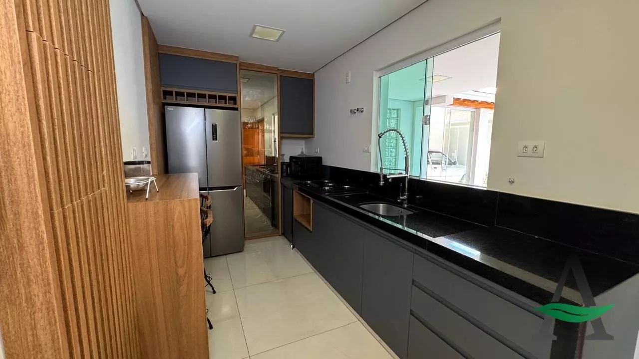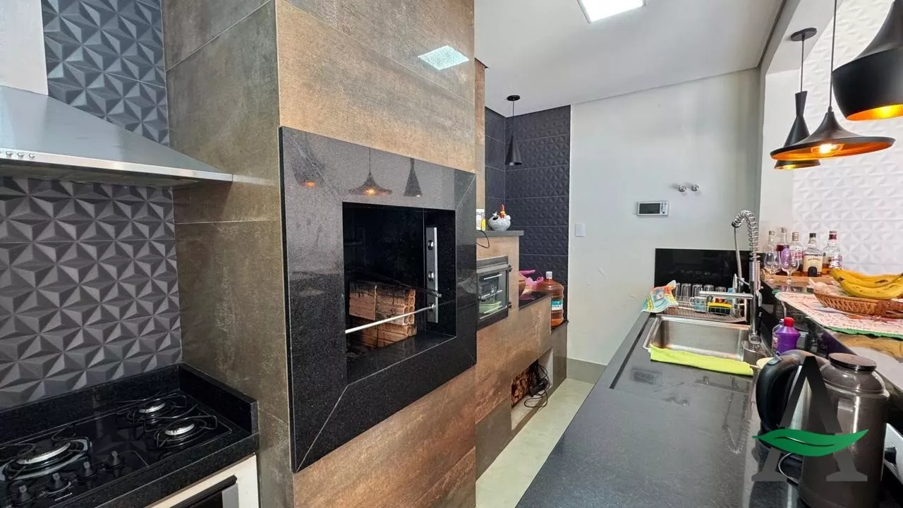 A cozinha planejada traz praticidade ao dia a dia, enquanto a área gourmet integrada à piscina cria o cenário perfeito para receber amigos e aproveitar os momentos de lazer. O imóvel conta ainda com fechamento em blindex, valorizando a iluminação natural e o design dos espaços.